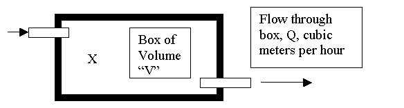 initial concentration is X/V. Call it C0. The flow of fluid through the box
