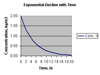 Here's a graph of that change in concentration with time: