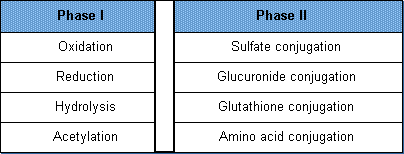 Because of the importance of biotransformation for understanding virtually all drug and toxicant processes, much research has been done and many different processes have been described. You should know about P450s for the Phase I and for Phase II about glucuronidation and glutathione which is described on pages 42 through 46 of your book.