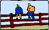 They next take the top rail off the fence, turn it sideways, and balance it on the middle rail. Then they hang a basket on each end of the rail. In one basket the put the pig and in the other basket they place stones. They continue to add stones until the rail just balances.  |
