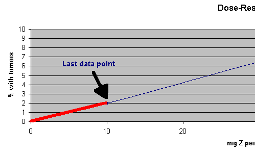 All these problems were long ago noted and except for a few very expensive tests to explore some low dose theory, no one tries to analyze in this very low dose range. The EPA and others have instead relied on extrapolations, from high to low dose. Here is the lower end of the chemical Z test: