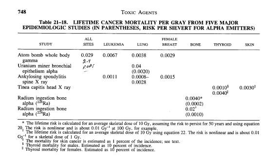 Now some history: The genetic effects of radiation were reported in 1927 in Drosophila by Muller and in 1928 in plants (barley) by Stadler; both showed that the frequency of induced mutations is a function of X-ray dose. Their experiments revealed that there was a linear relationship between X-ray dose and induced mutation level. This implies that there was no threshold or "safe" dose of radiation and that all doses are significant. Finally, "split dose" experiments showed that the genetic effects of radiation are cumulative.[That's from http://www-personal.ksu.edu/~bethmont/mutdes.html#mutagens ] This leads to the conclusion that there is no safe dose of radiation. Lower doses may cause less mutations. Is that true? If the cells die, there is no problem - that is why x-rays are used in medical treatments to "burn" tumors. Discounting that, might there be a safe dose? If cells repair DNA damage, and we are sure they do, there should be a dose, below which virtually all the damage is repaired. Here is an excellent web review of the human epidemiology. Wilson. It appears to me that very low doses, below background, are either not harmful or, the harm is too small to be detected.