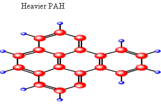 and beyond would be solid if they were pure. They are sometimes dissolved in oil. They are heavy tar-like compounds and would not be absorbed if they were room temperature. If heated they can volatilize and be inhaled. In that manner are they carcinogens, at least some of them. Since the chief toxic ingredient of cigarette smoke is a PAH, they have been studied in some detail. The carcinogenicity varies with the ring structure. |