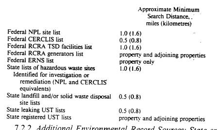 which tells you to check the NPL (National Priorities List, i.e., Superfund sites) for sources of contamination within 1 mile of the property you are assessing, etc.