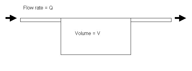 Concentrations of some contaminants will not vary with time, or vary so slowly we may consider that they are constant. Some long lived radioactive isotopes, some metals, for example, change very little. But the concentration of most contaminants will change with time. Let's look at a lake that has been contaminated with MEK from a barge spill. The lake has a stream running in and a stream running out. At the start of our analysis, we will assume that the lake has the same concentration of MEK and the lake is "well-stirred." By well-stirred, we mean that the concentration of MEK in the entire lake is the same as the concentration in the outflow stream. If MEK diffuses rapidly in the the lake and the streams are small compared to the volume of the lake, this is not a bad assumption. In any case, if we don't assume it the math gets impossible.