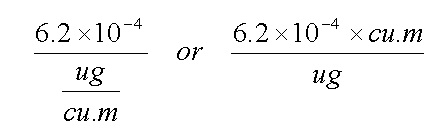 Inhalation Unit Risk -- 6.2E-4 per (ug/cu.m) Note the "per" This is