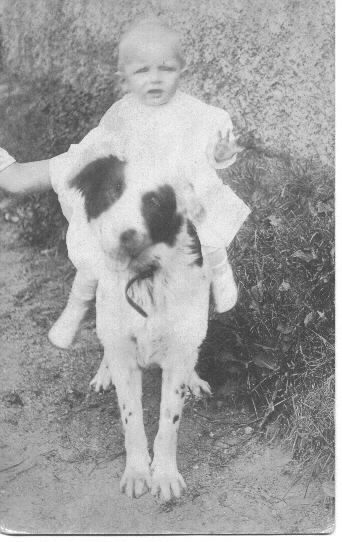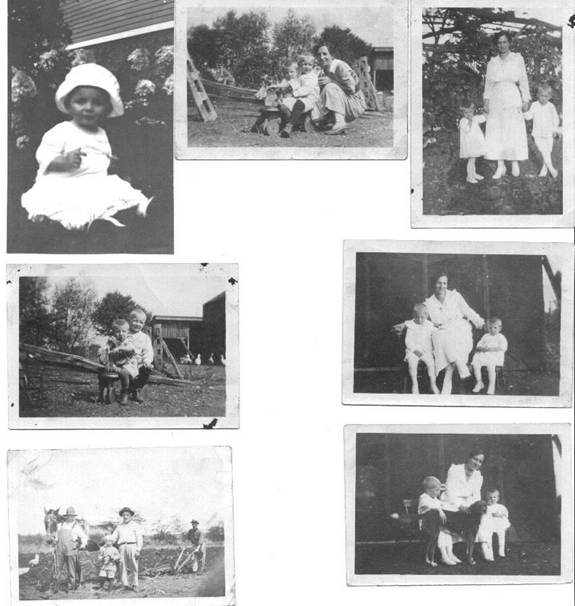 Clockwise: White cap, Fred Rimmler; Fred and Eliz on toy with Gram (Teaneck, 1920), same, same, same with dog; With horse, Leo Kraus at head (Else beau, artist, made copper tray, sphinx head, boy is Fred, John Muir married Else, Karl Freiderich Rimmler at plow (Hackensack, 1922). Note says Green Street, Hackensack (NJ). |