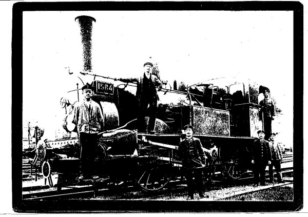Regarding the locomotives, it is not clear if they are intended to be photos of the rigs, his father or my great-grandfather worked on. Heinz was interested in art and photography, and easily could have pictures of interesting things that were not necessaryly personal. Of the two photos, the clearer has some men standing near, but this is a very old locomotive. The picture of the locomotive that is further away seems more likely of the era when our forebears were working on the rail road. I notice that rails running perpendicular to the locomotives appear to be some sort of skids to move heavy equipment, rather than to run a train on. My great-grandfather worked in the machine shop of the railroad.