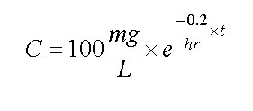 Where the initial concentration was 100 mg / L. All you need is a hand held calculator and the time since the spill and you can calculate the concentration. [HW problem #3]
