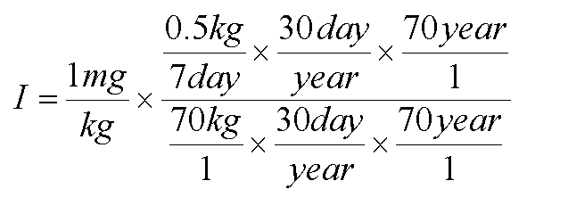 CR = is the contact rate. For now, let us assume the adult eats 0.5 kg of beans each week. What is the Ingestion Rate? (Look back at the definition if you like.) Then calculate. You should have got