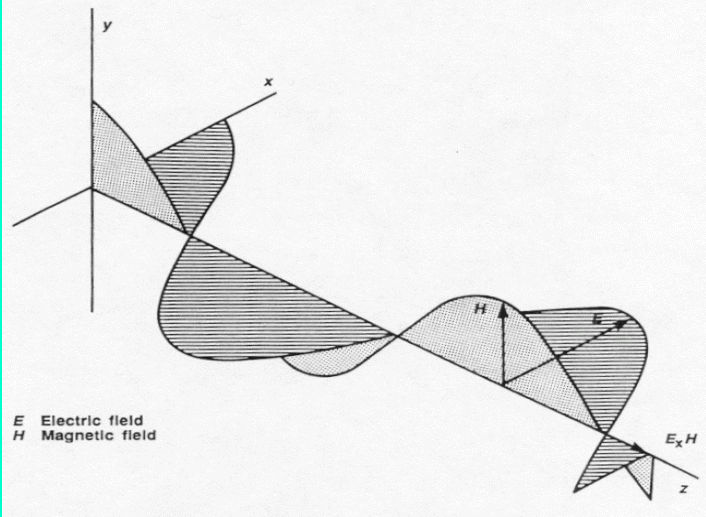 Most often these two fields exist together, here the electric field is E and the magnetic field is indicated by H
