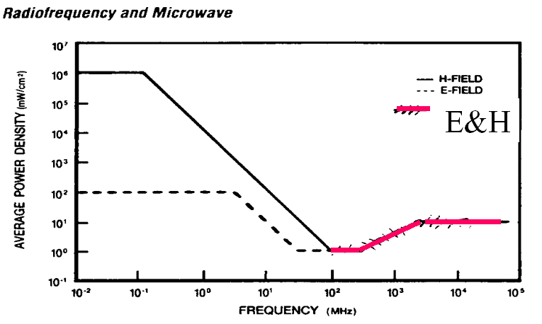So you might have guessed that the applicable health and safety standards are dependent on the frequency of the non-ionizing radiation. Here is a sheet from the TLV booklet ©ACGIH that tells you which section of the TLV book to look for standards: